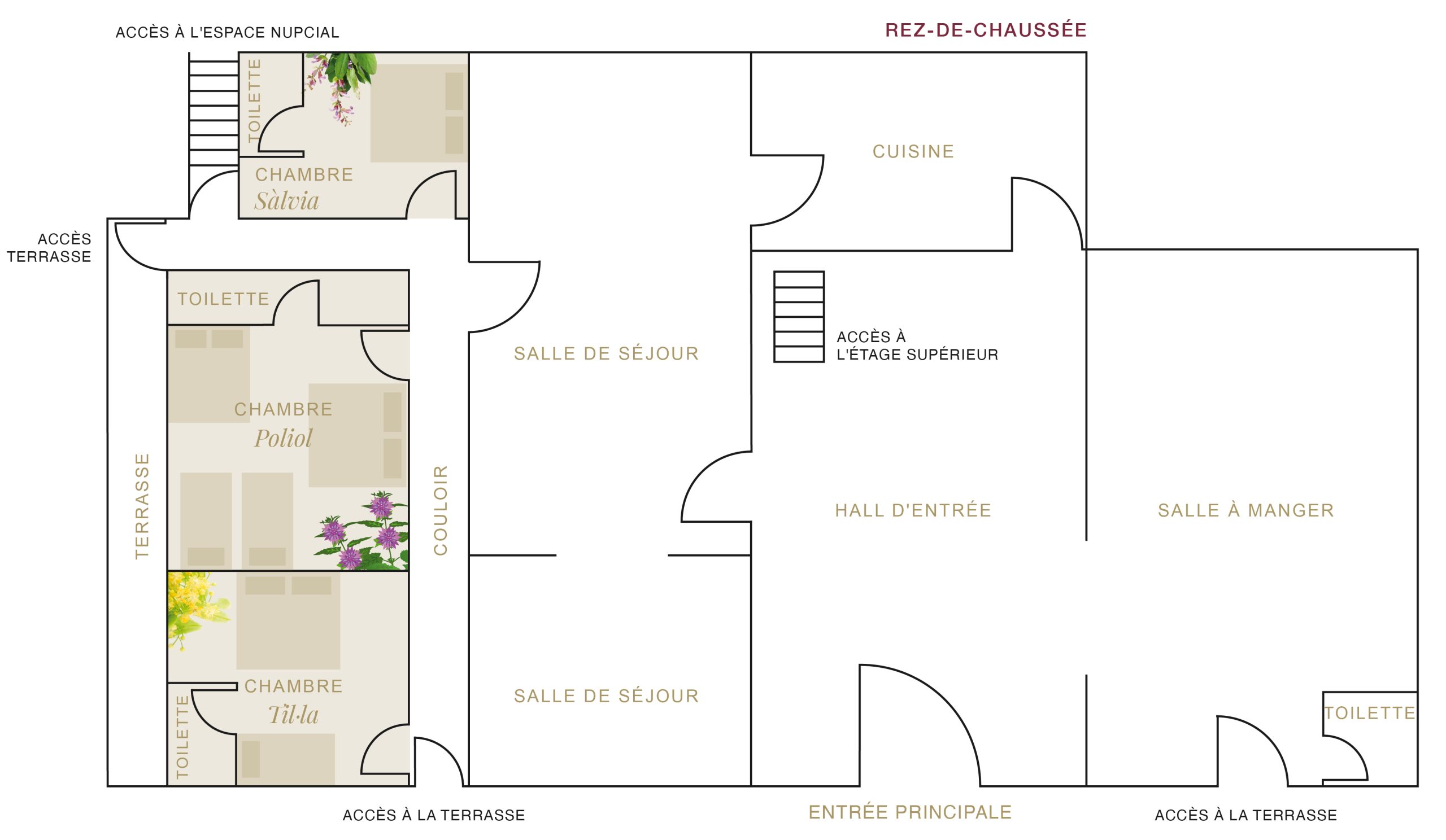 Cet espace donne accès au jardin du dôme par un escalier.